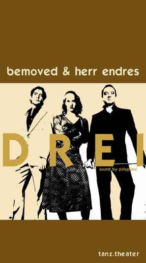 mit dem stück 'DREI' intensiviert das tanztheater bemoved - martina heim und andré schober - die zusammenarbeit mit dem künstler holger endres. bemoved setzt in diesem stück für drei personen, die melange aus butoh und modernem tanztheater fort.